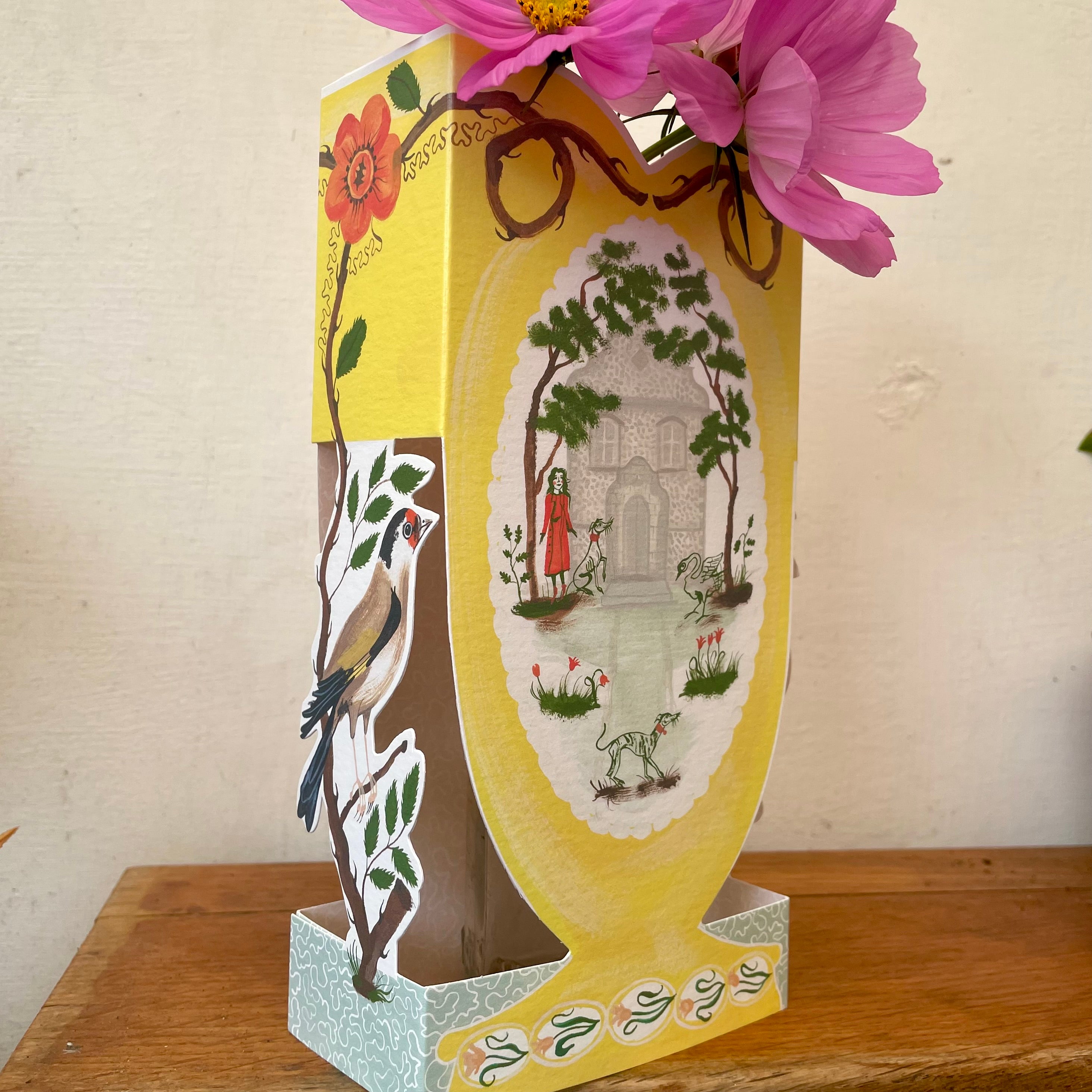 Finches & Folly - A 3D keepsake card in the form of a Romantic Vase featuring decorative paintings by Polly Fern.