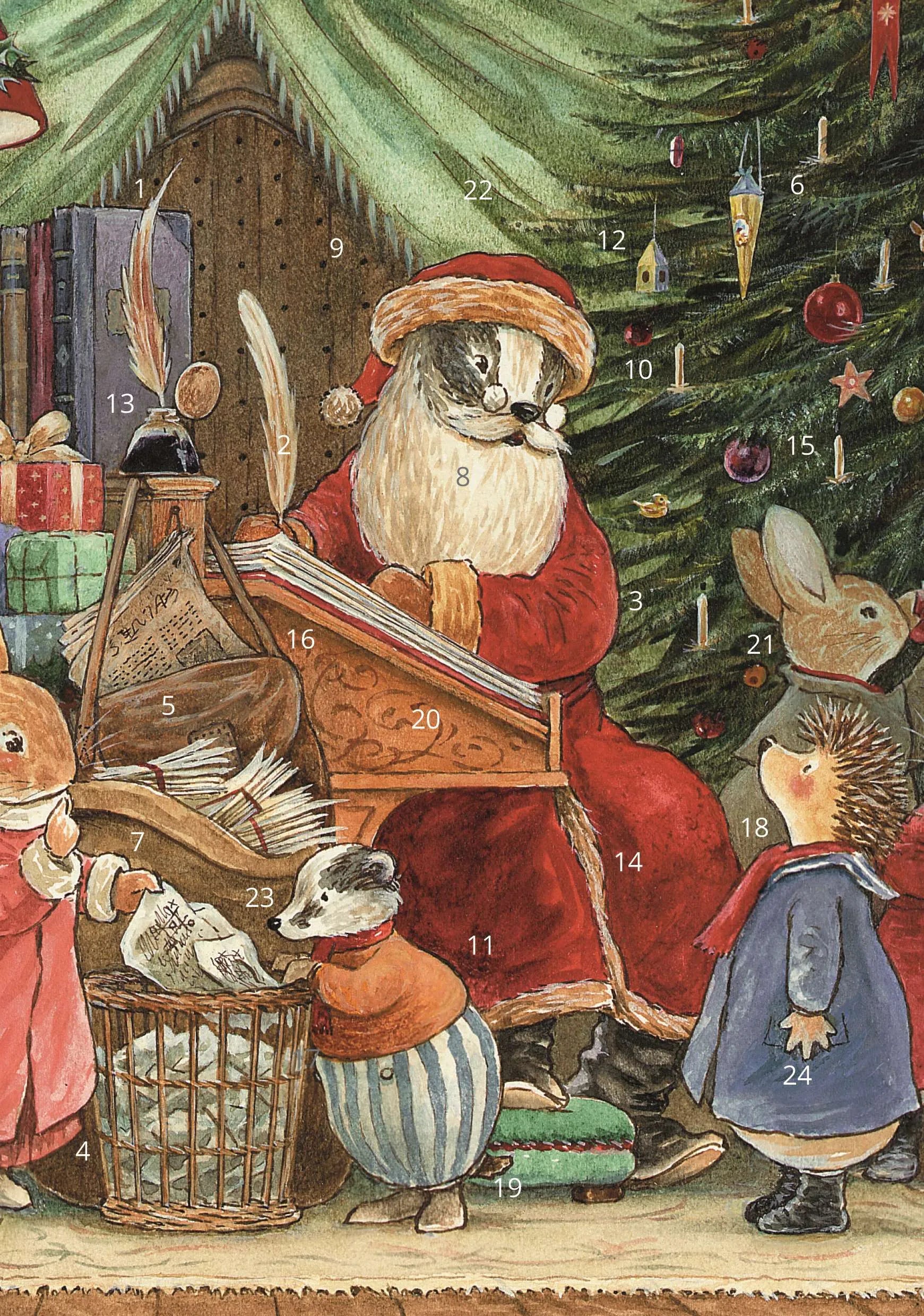 Traditional advent card featuring 24 windows to open each day.